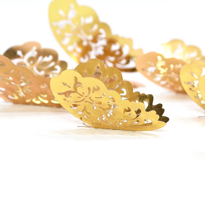 12-Pieces/Set 3D Wall Stickers Hollow Butterfly Paper 3 Sizes Silver Gold Stickers Fridge Stickers Home Party Wedding DIY Décor