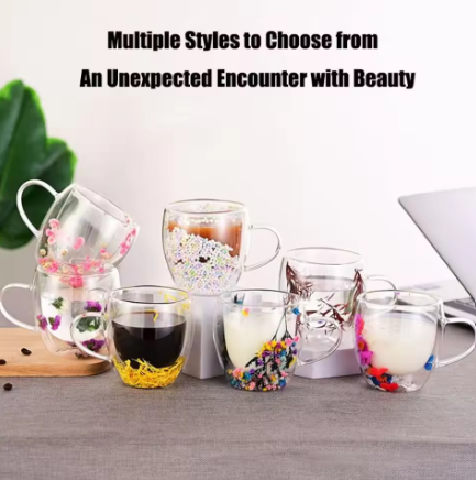 Those sound lovely! Aesthetic dried flower double-walled glass mugs blend practicality with a touch of elegance. The double-walled design helps maintain your drink's temperature while also giving a floating effect to the dried flowers inside. They can make your morning coffee or tea feel extra special and add a bit of beauty to your daily routine