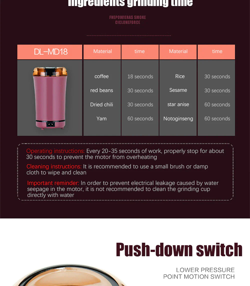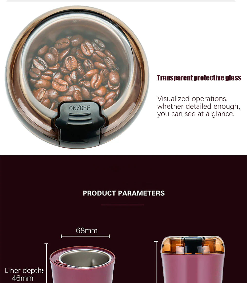 - Perfect for grinding coffee beans, nuts, seeds, herbs and spices and so on, saving your effort and time.