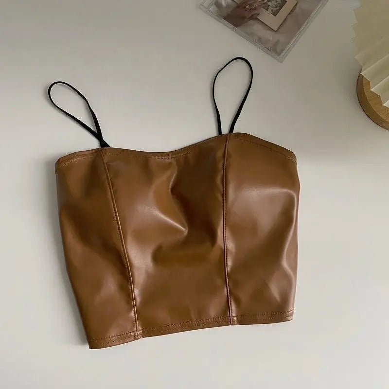 Step up your fashion game with this stylish and bold Women’s PU Leather Strap Camisole. Featuring sleek leather straps and a flattering smocked bottom, this slim-fit crop top combines edgy design with comfort. The high-quality PU leather adds a touch of rebellious charm, while the smocked detail ensures a perfect fit that hugs your body. Whether you're heading to a night out, a concert, or a casual date, this versatile crop top pairs perfectly with jeans, skirts, or shorts. Unleash your inner fashionista with this chic and trendy piece.